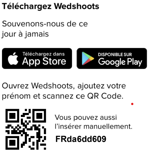Cet espace est dédié à toutes les photos et vidéos que vous avez prises lors de notre mariage. Moments drôles, tendres, inattendus… chaque souvenir compte et nous permettra de garder une trace unique de cette journée magique.